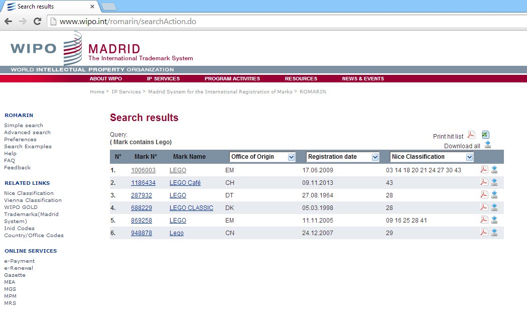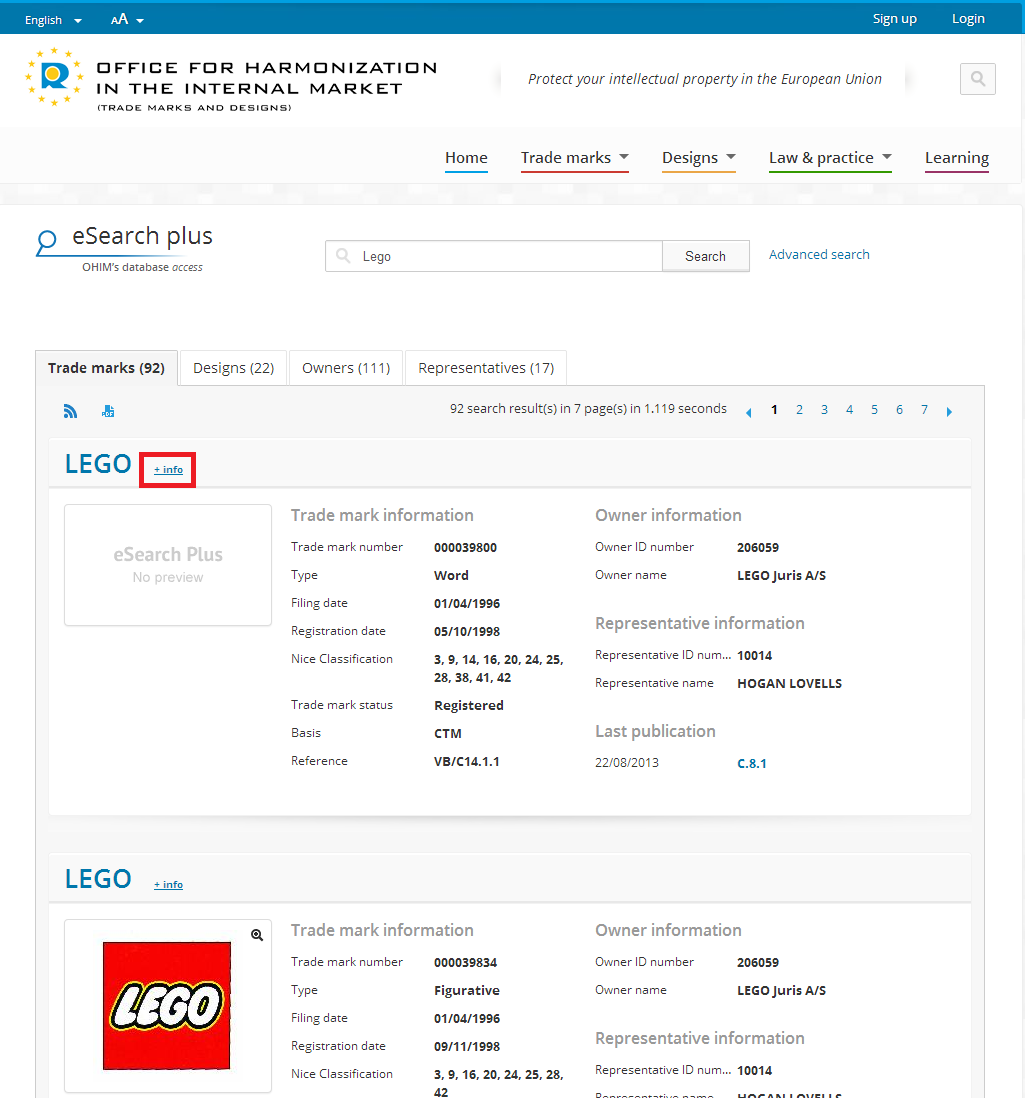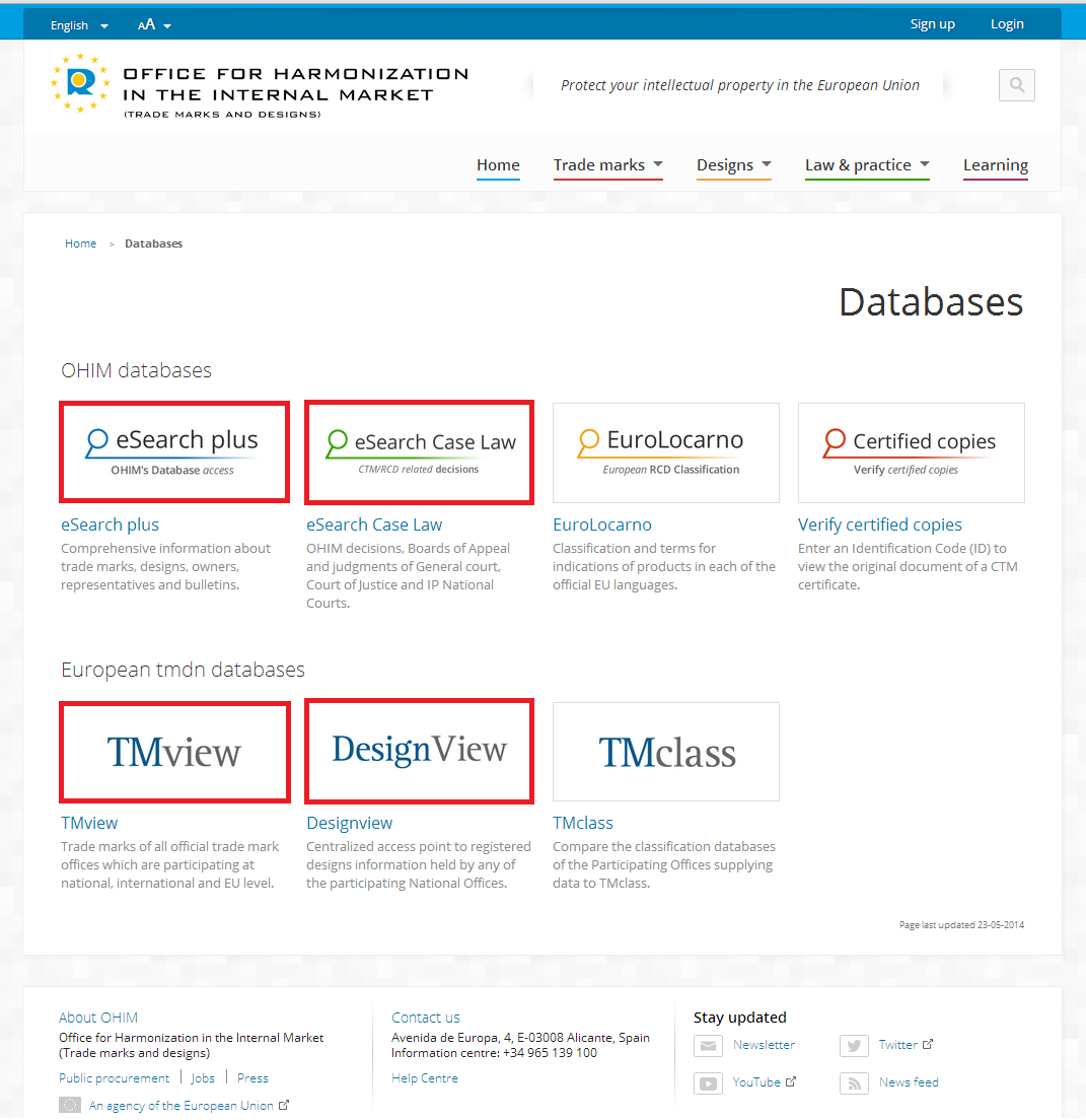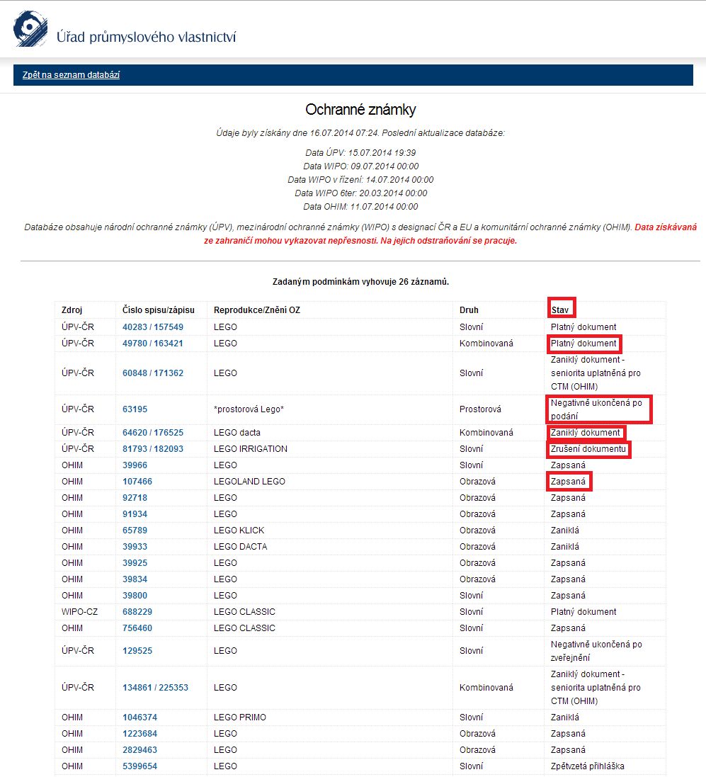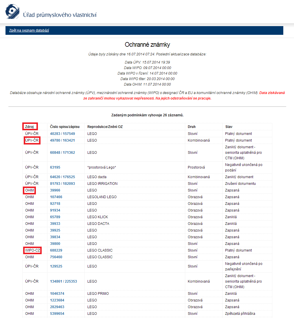 Vysvětlení: Komunitární ochranné známky jsou v působnosti OHIM, tedy je třeba je hledat v jeho databázi