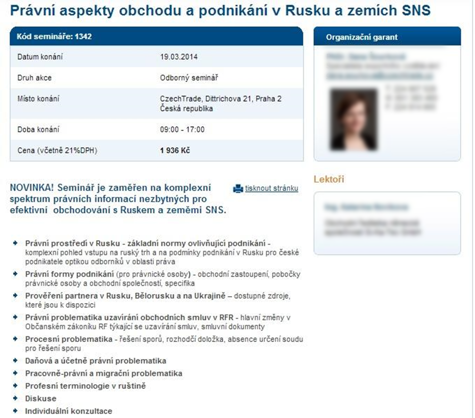 Návštěvník projde osnovu, docela se mu zamlouvá. Chce vědět, jaký odborník bude mít seminář na starosti. Jméno lektorky je sice uvedeno, ale nejsou k ní skoro žádné informace a nevede z jejího jména žádný odkaz. A tak…